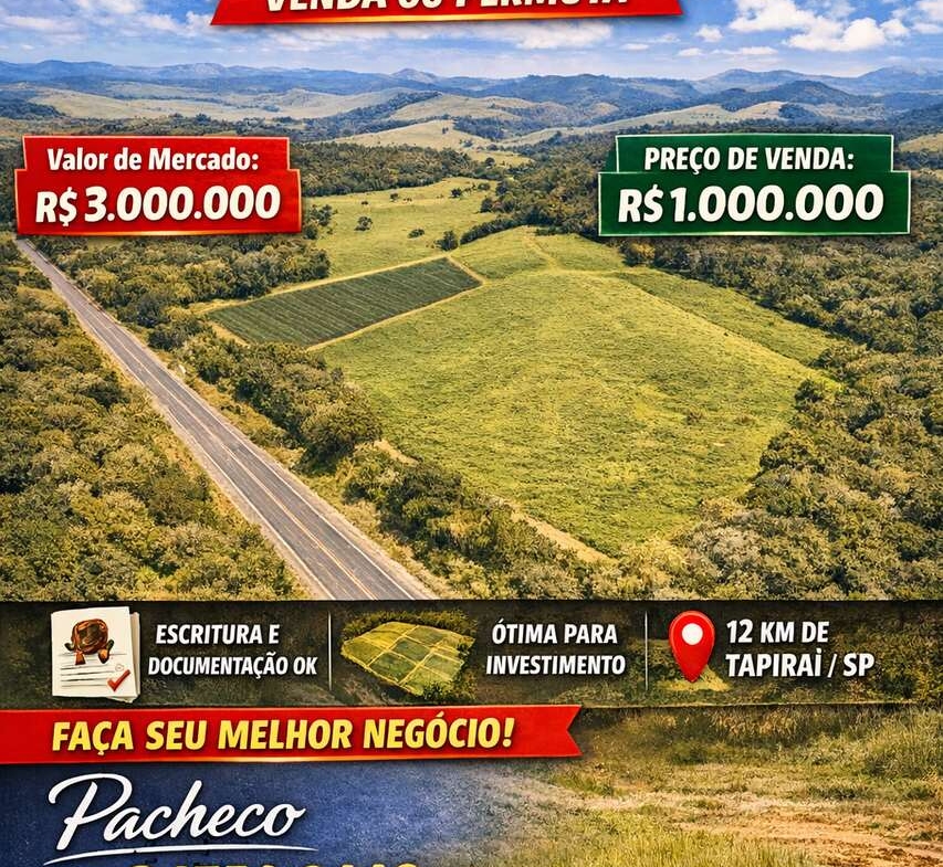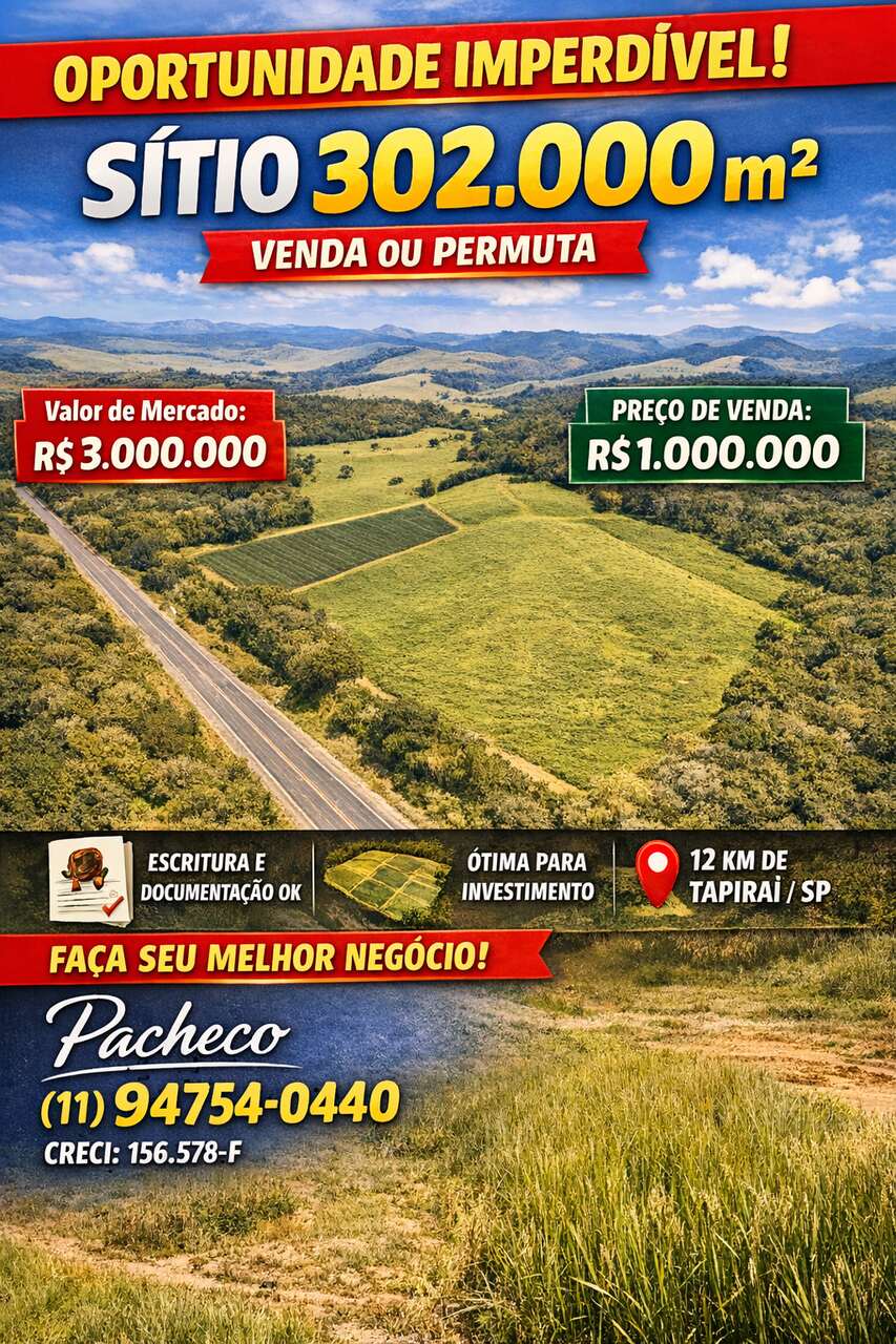 #SítioAVenda #ÁreaRuralSP #ChácaraSP #TerrenoGrande #PropriedadeRural #InvestimentoRural #ImóveisInteriorSP #TapiraíSP