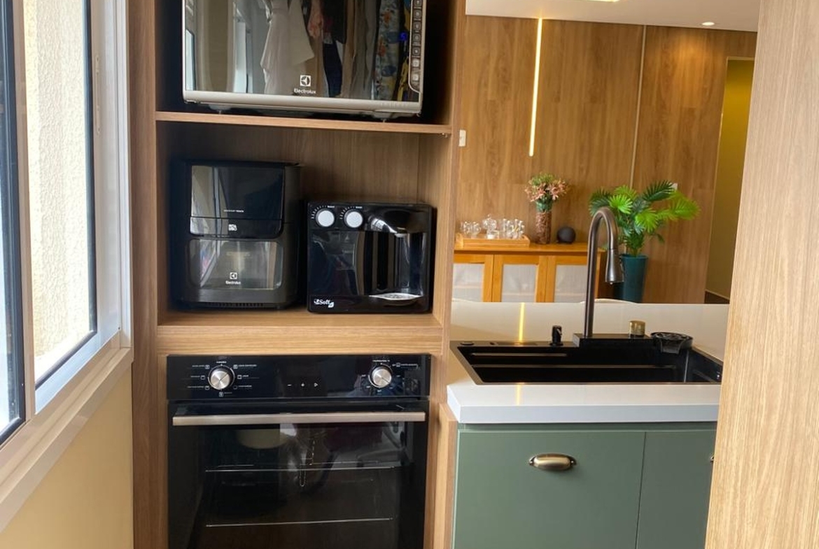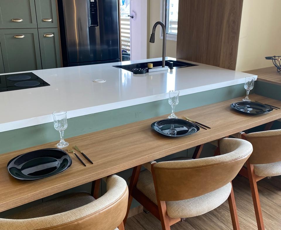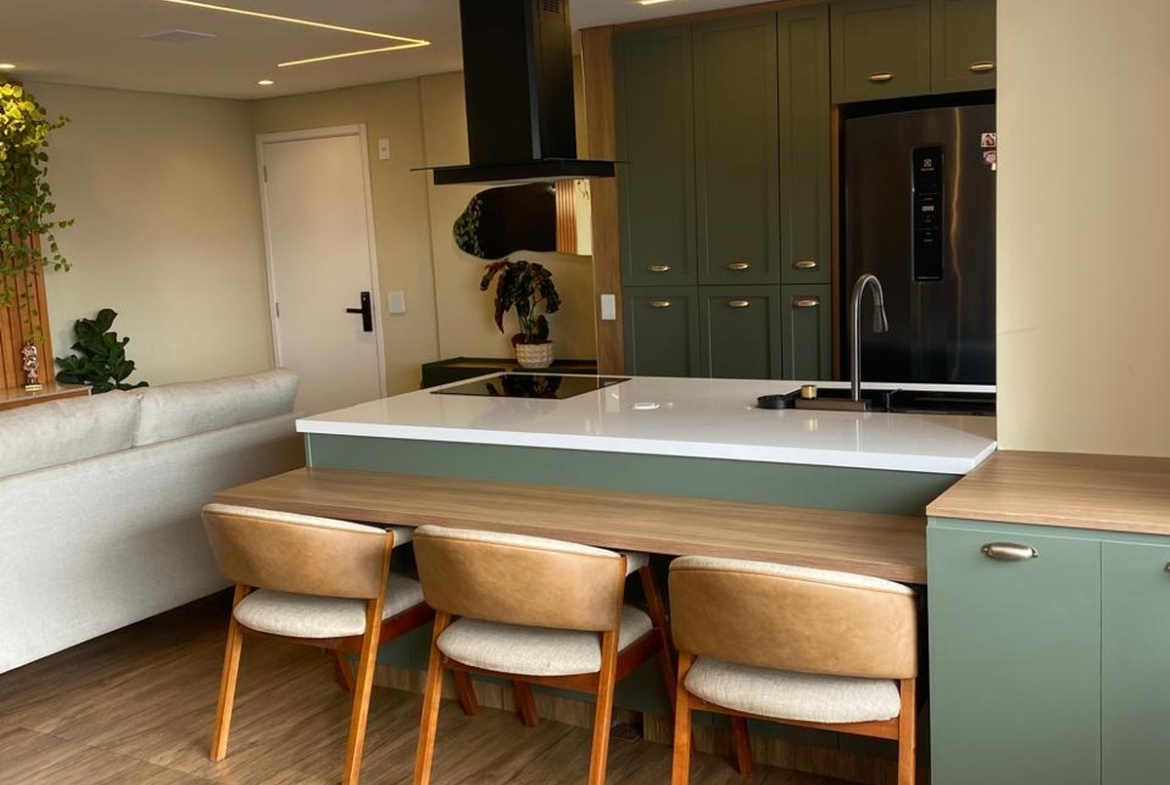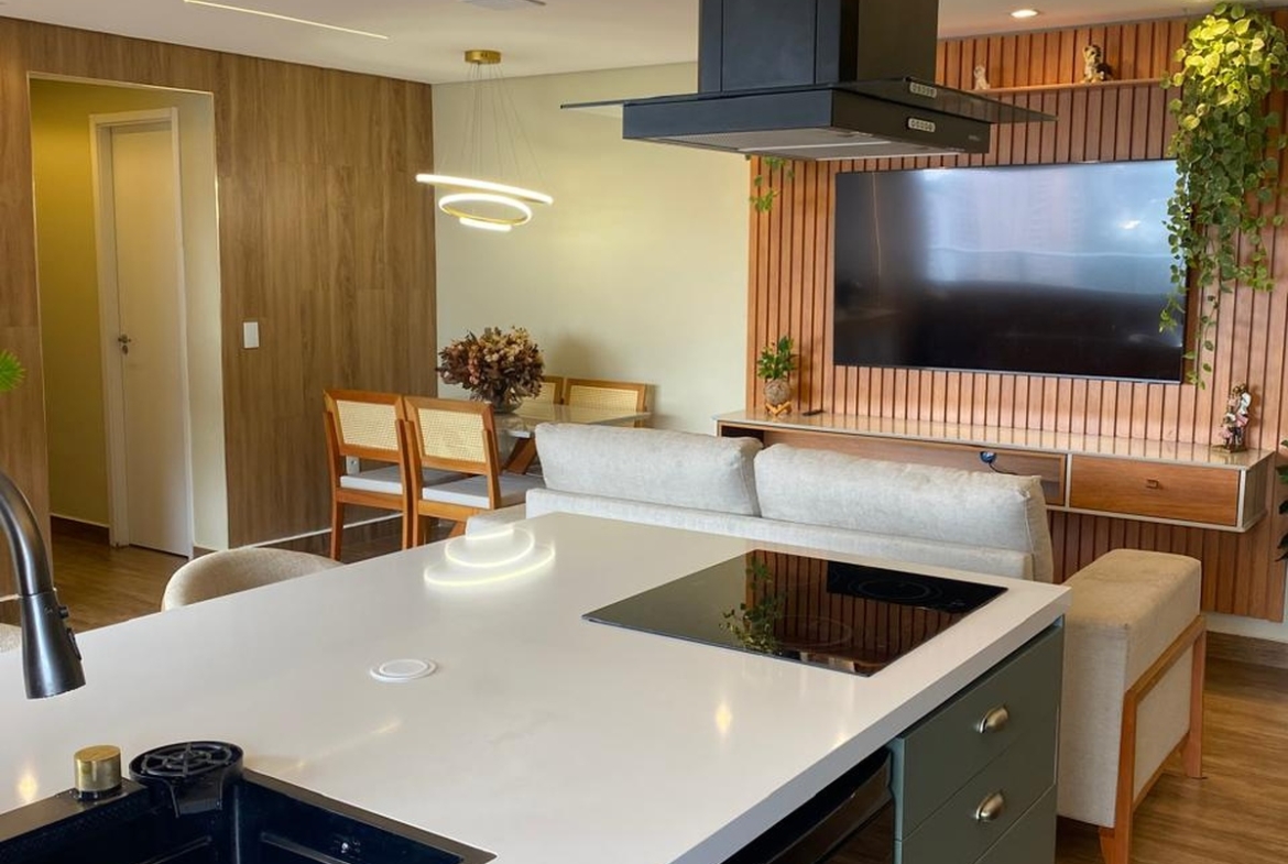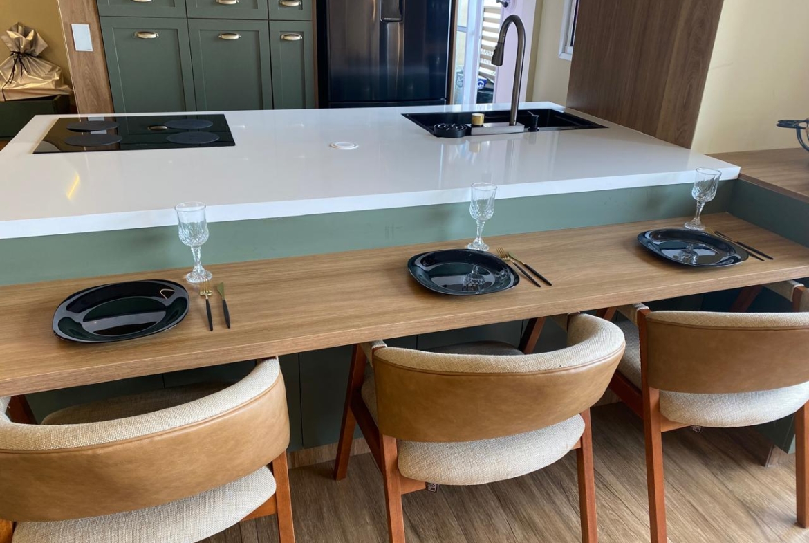 O imóvel também conta com sistema de som embutido no teto e iluminação digital já embutida, que você pode controlar com qualquer dispositivo inteligente do tipo Alexa 💡🎵. 2 vagas de garagem individuais completam o conforto. Os demais móveis e eletrodomésticos serão retirados, mantendo apenas o planejado da cozinha e da ilha, para você personalizar do seu jeito 🛋️✨.