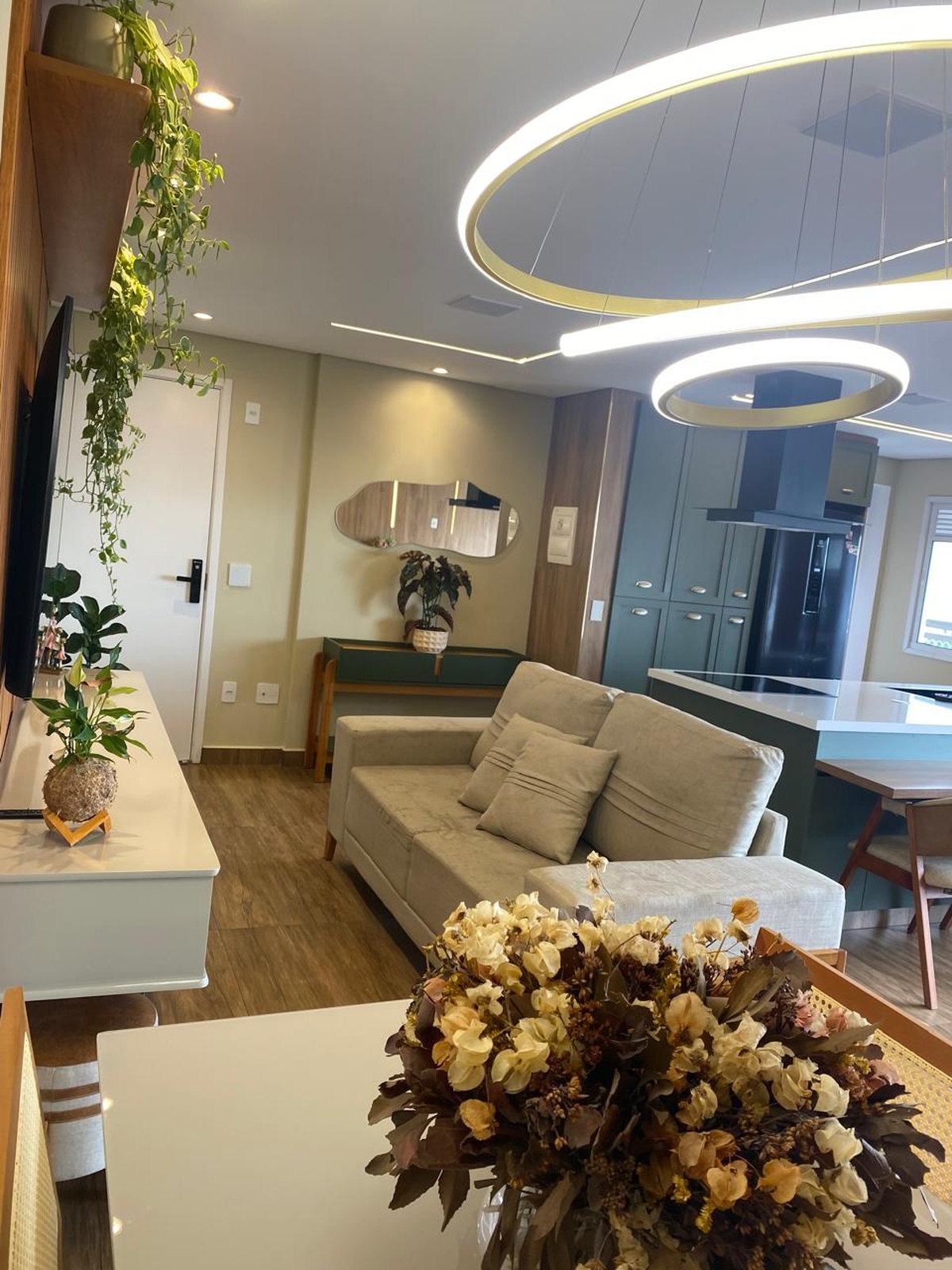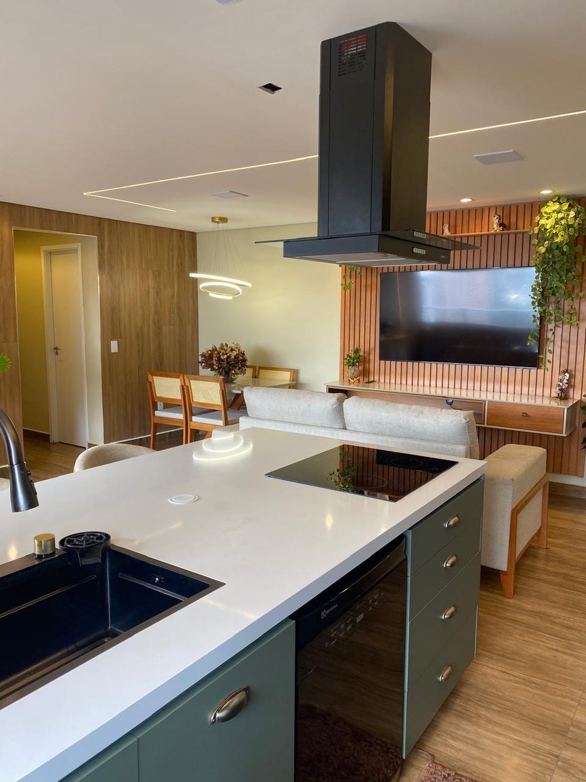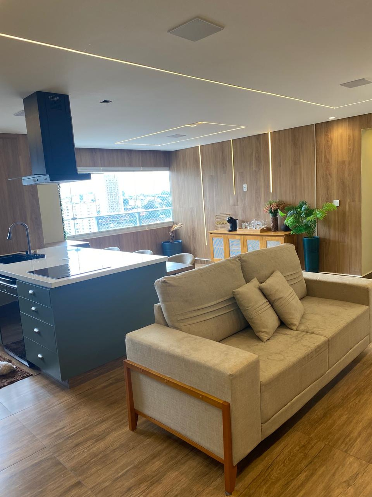 O imóvel também conta com sistema de som embutido no teto e iluminação digital já embutida, que você pode controlar com qualquer dispositivo inteligente do tipo Alexa 💡🎵. 2 vagas de garagem individuais completam o conforto. Os demais móveis e eletrodomésticos serão retirados, mantendo apenas o planejado da cozinha e da ilha, para você personalizar do seu jeito 🛋️✨.