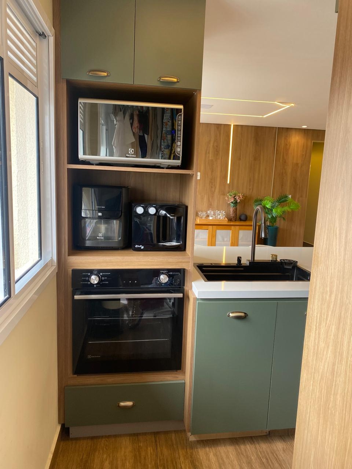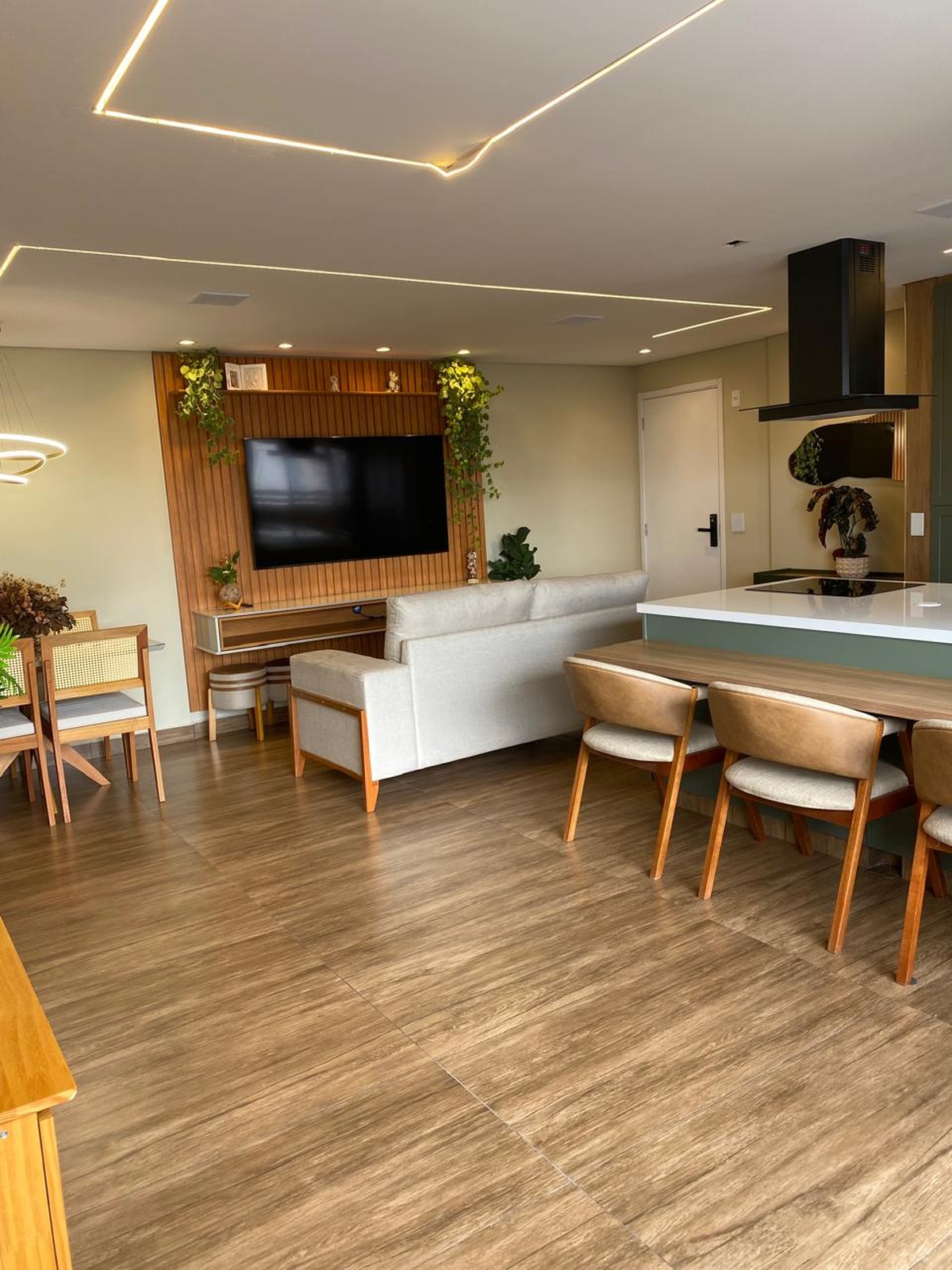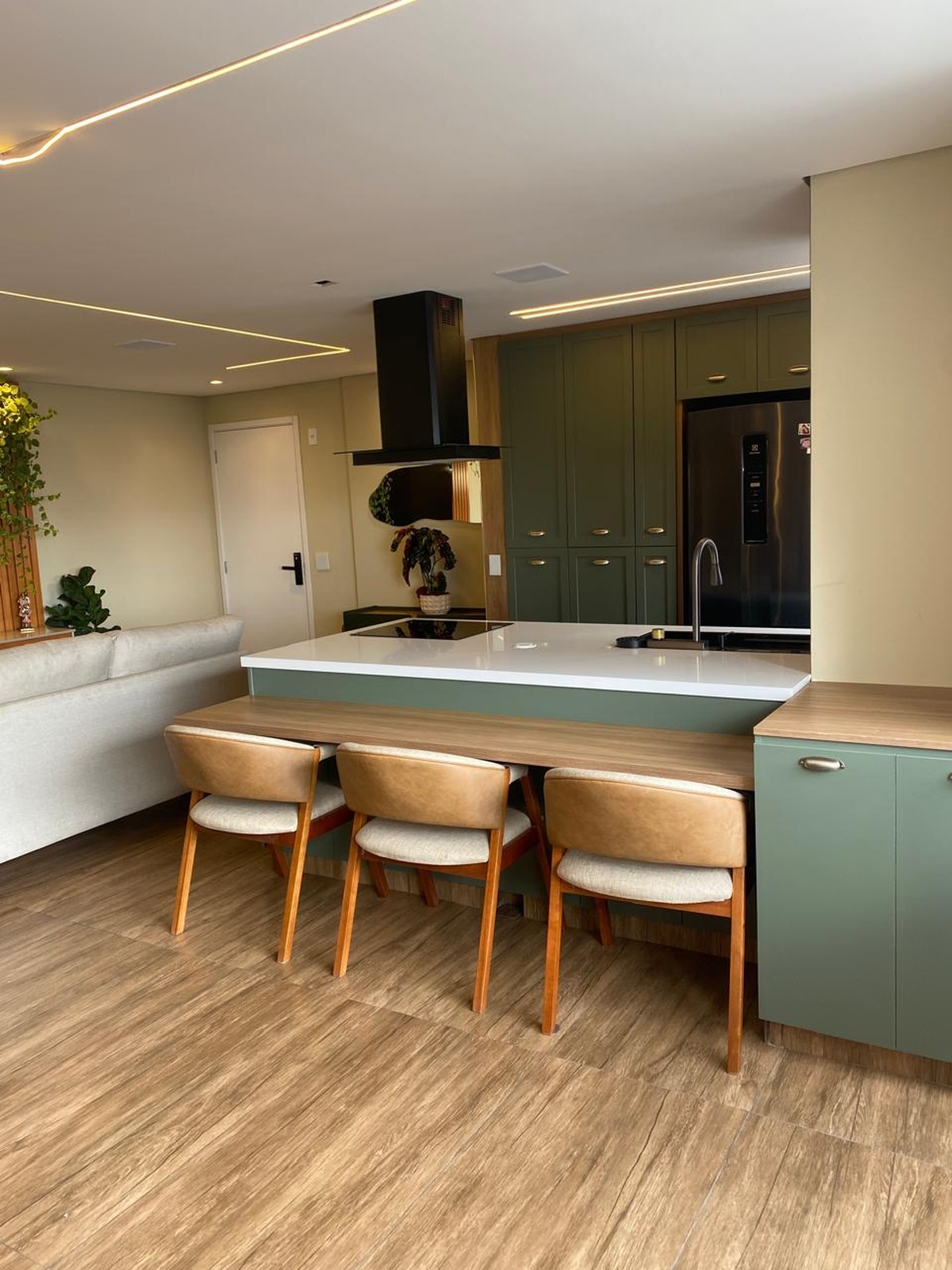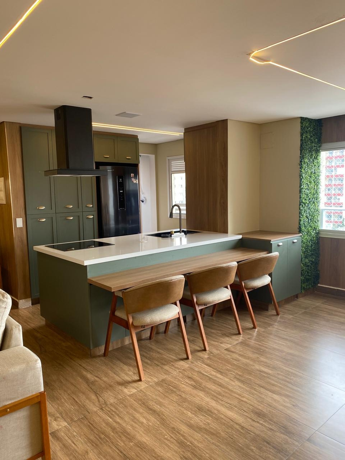 O imóvel também conta com sistema de som embutido no teto e iluminação digital já embutida, que você pode controlar com qualquer dispositivo inteligente do tipo Alexa 💡🎵. 2 vagas de garagem individuais completam o conforto. Os demais móveis e eletrodomésticos serão retirados, mantendo apenas o planejado da cozinha e da ilha, para você personalizar do seu jeito 🛋️✨.
